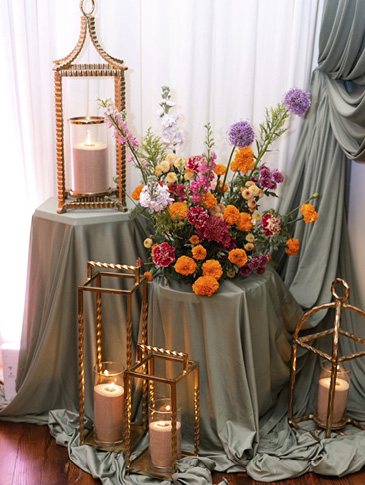 Specializing in luxury candles for weddings and events, Everlight Candles by Tables Setters create an unforgettable atmosphere through beautifully curated candlelight. Thoughtfully placed to transform any space, their eco-friendly granulated wax candles can be customized to match any color, setting the perfect mood with elegance, warmth, and refined design.
