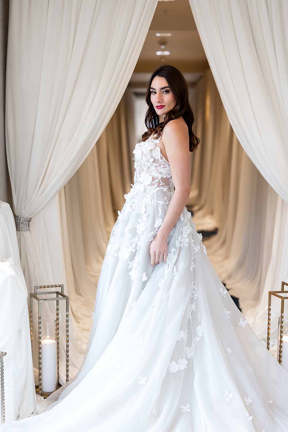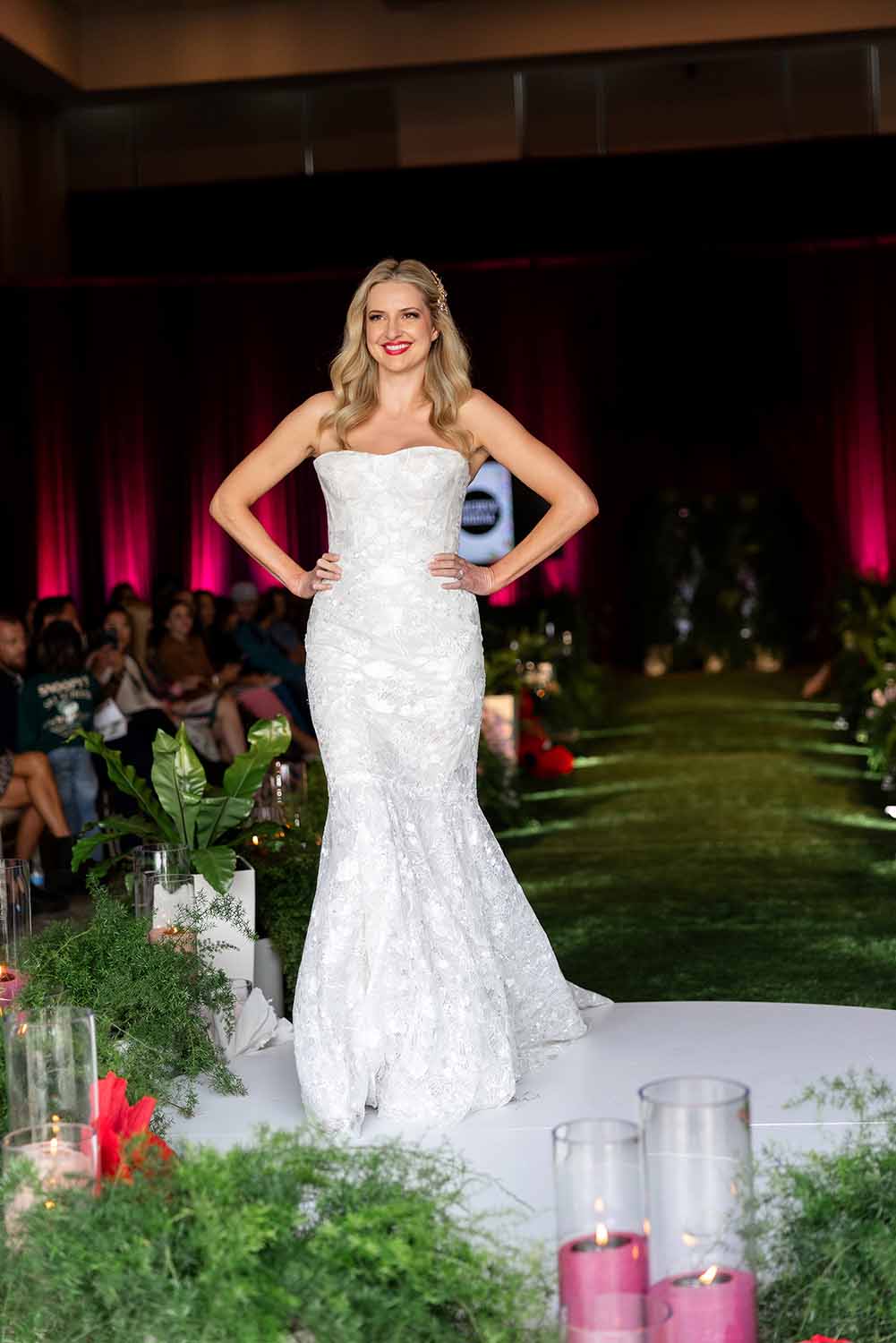 An afternoon of couture and cultivated romance unfolded as San Diego Style Weddings partnered with The Westin Carlsbad Resort & Spa for an inspired wedding fashion experience. With creative planning from Nicole Shadoan of The Wedding Agency San Diego, the ballroom transformed into a dramatic dreamscape — swathed in rich burgundy draping and anchored by a grass runway overflowing with lush live plants, vibrant sculpted paper florals, and the soft flicker of candlelight. And more…