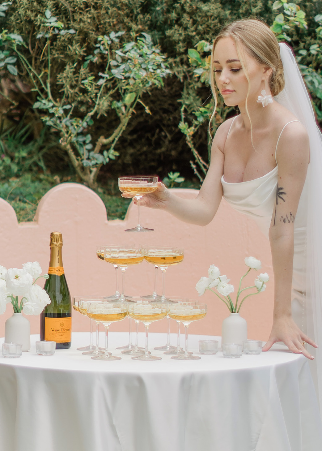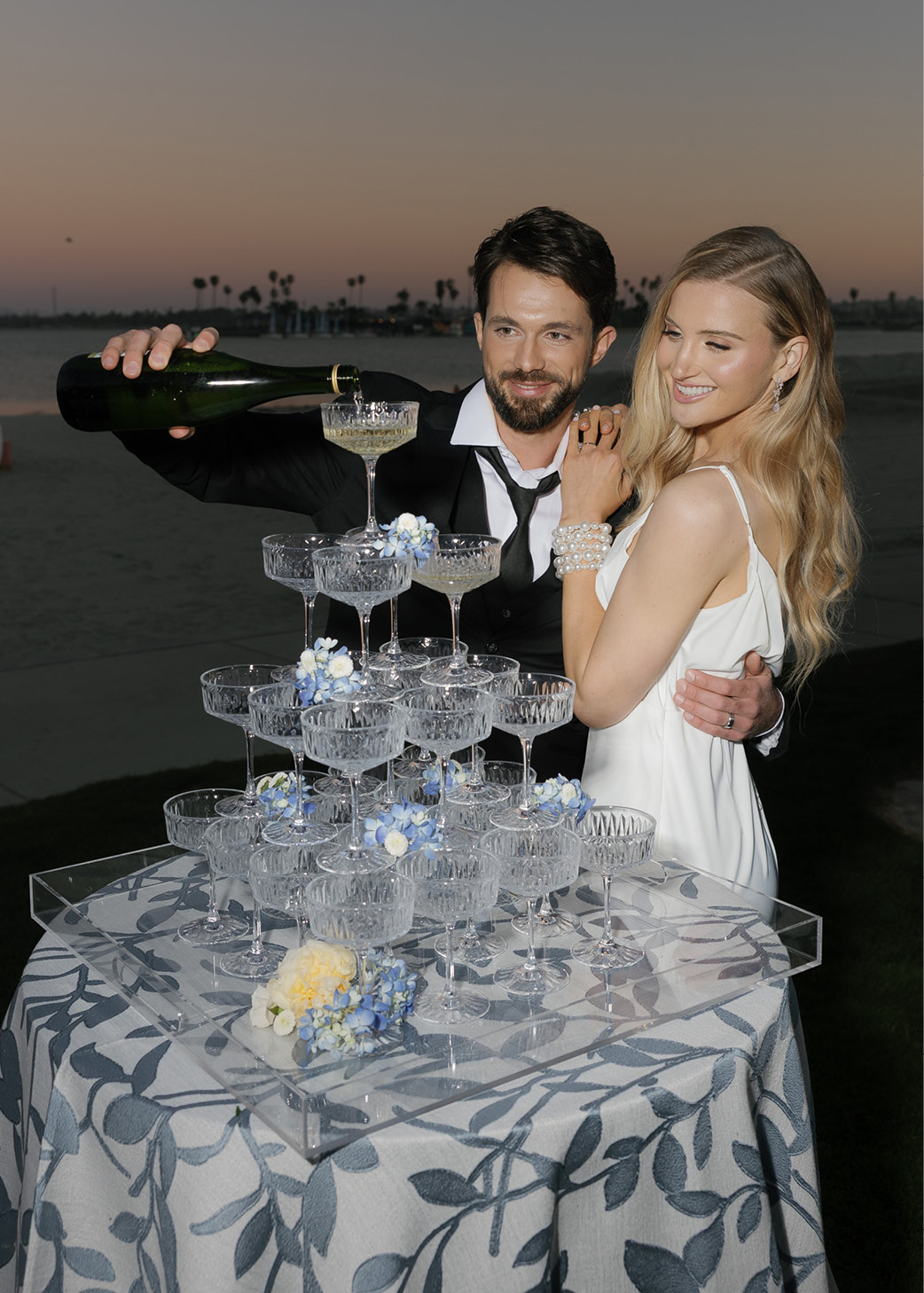 This resurgence is also tied to the return of glamour in modern weddings. As celebrations lean into personalized luxury and curated guest experiences, champagne towers offer a dramatic yet timeless statement piece that complements black-tie receptions, garden soirées, and modern editorial-inspired celebrations alike.
