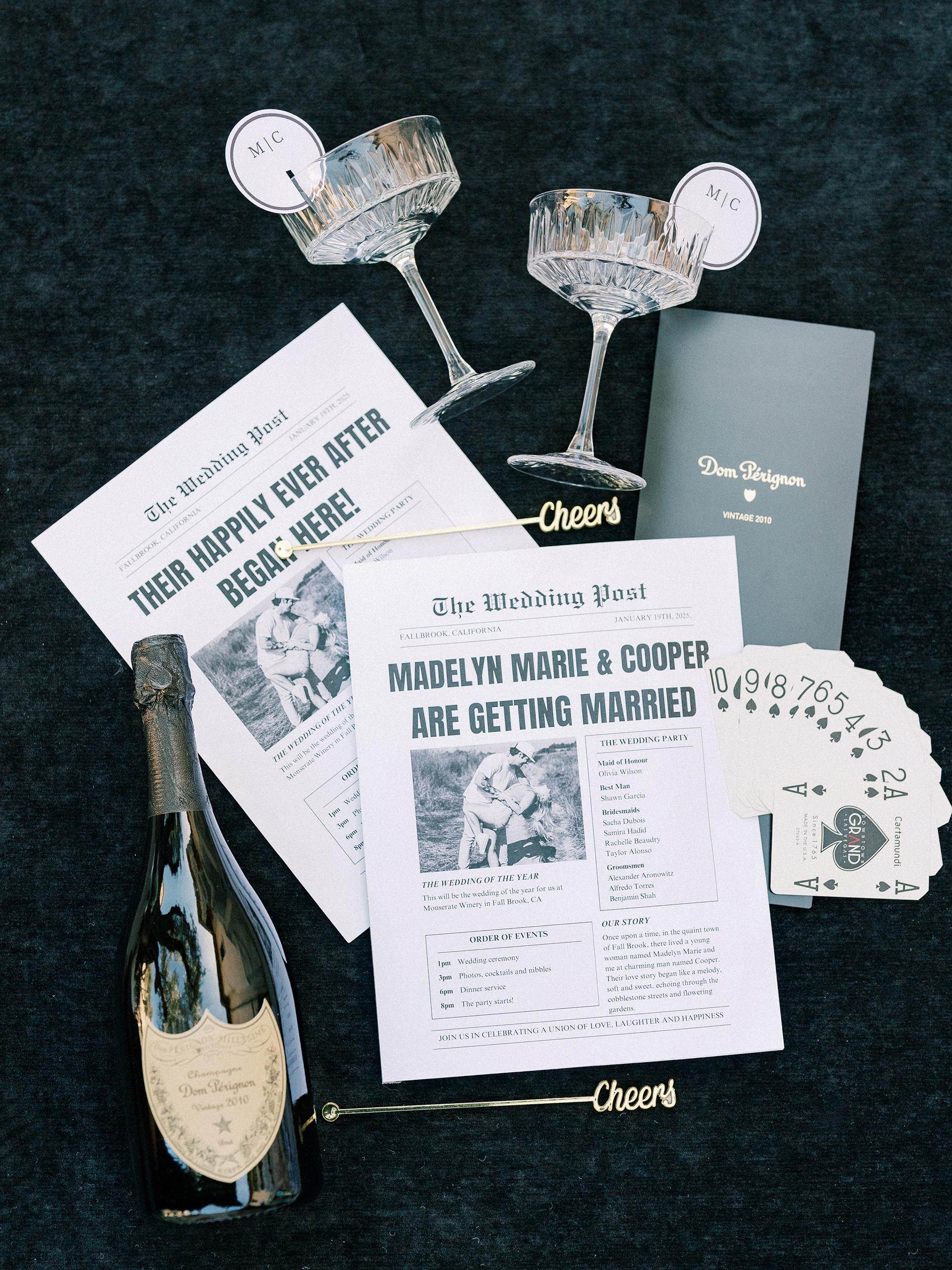 Glitz and glamour transcend generations at this Old Hollywood-inspired affair, influenced by the legacy of lead planner/designer Michelle Coto’s late grandmother. Set against the romantic backdrop of Fallbrook’s Monserate Vineyards & Winery, this opulent shoot reimagines timeless elegance in the modern era.