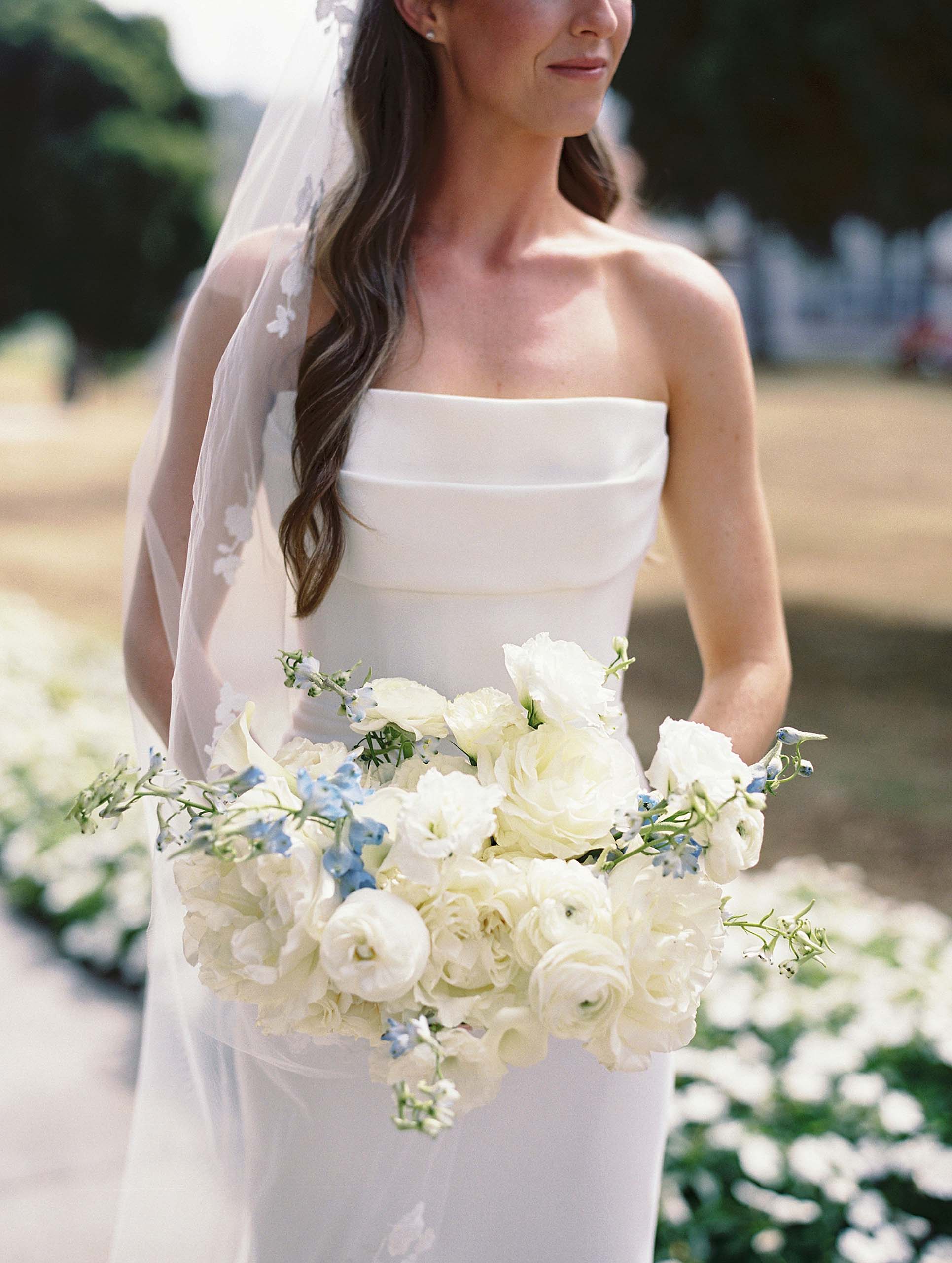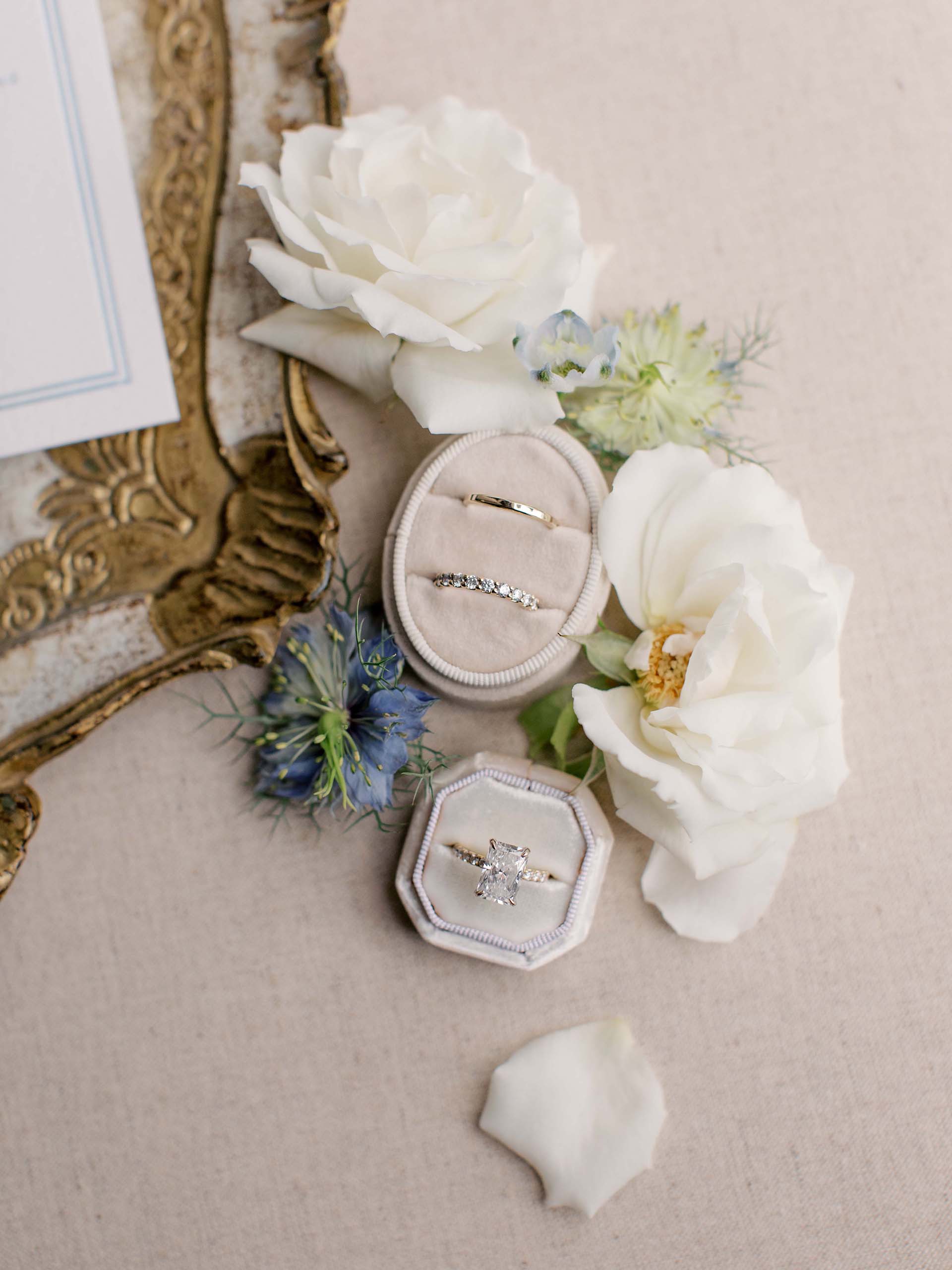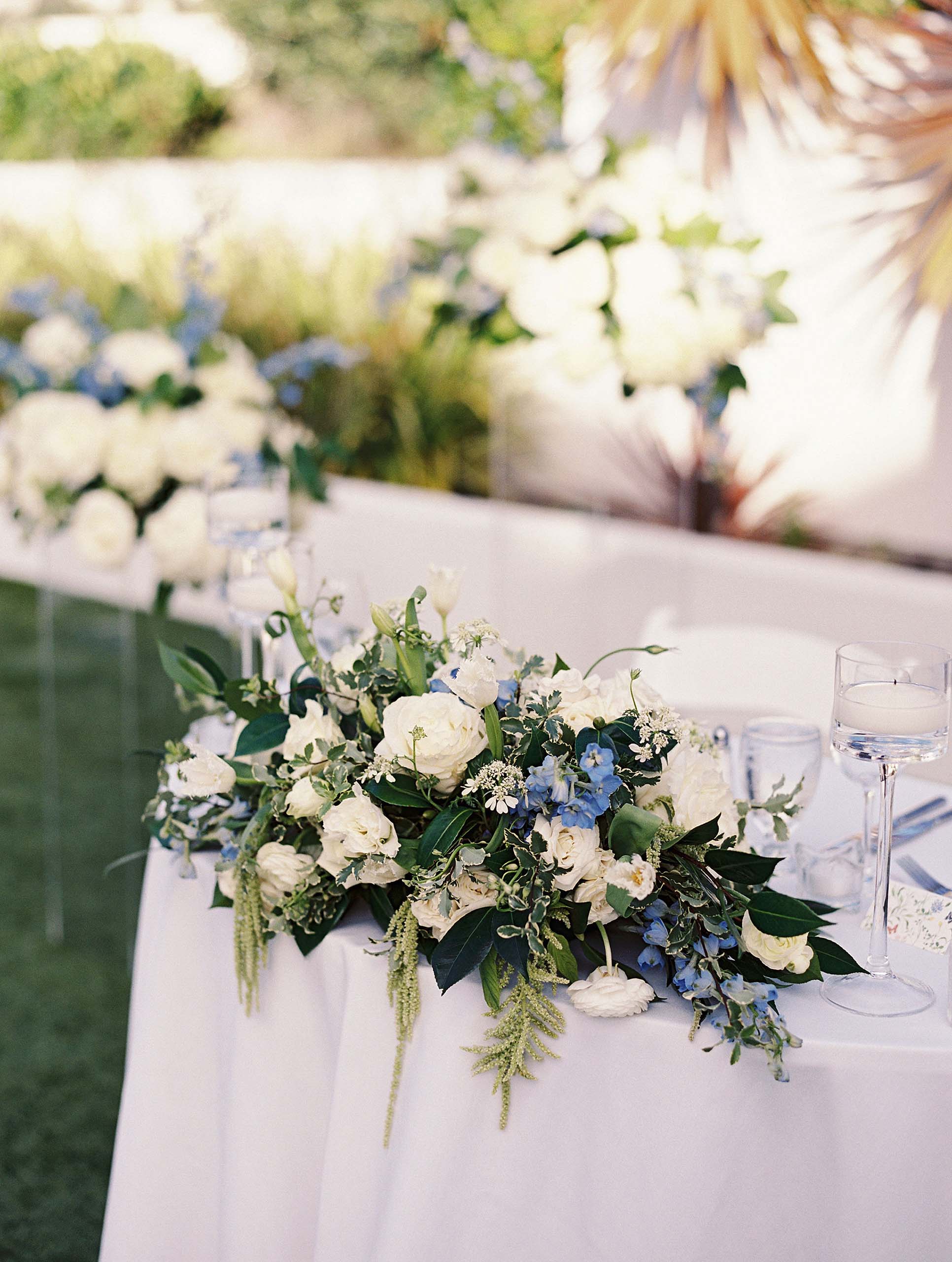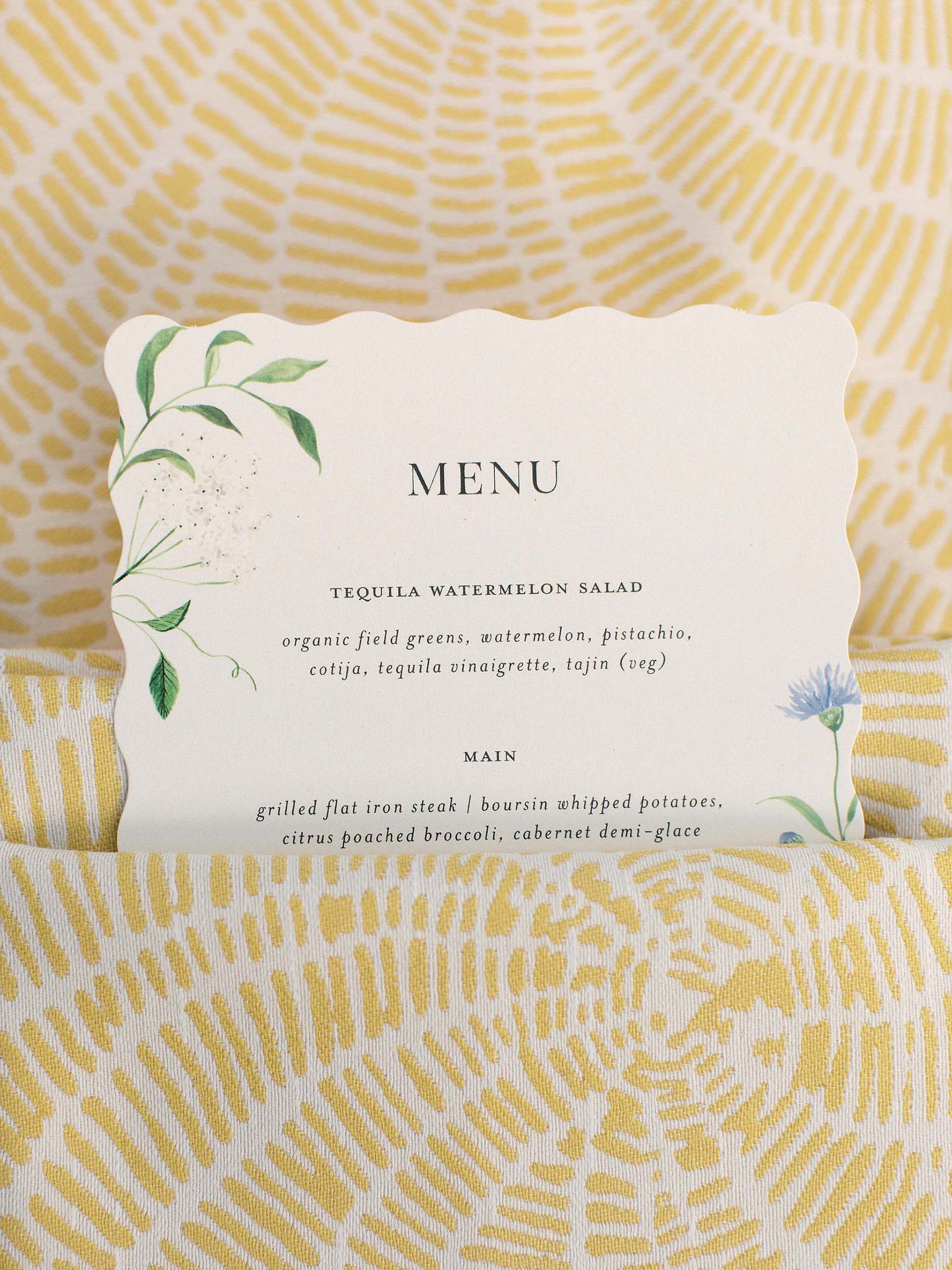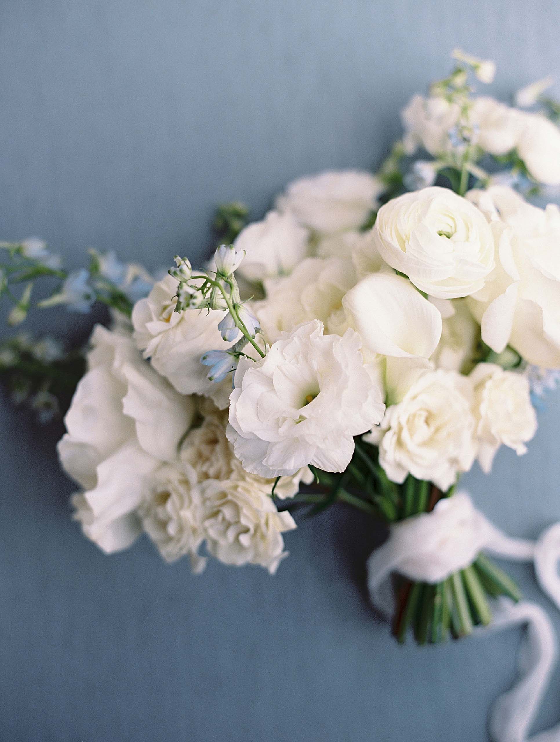 Florals by Studio Fleurish featured soft ivory blooms with greenery and touches of baby blue, while light yellow accents brought warmth to the tablescapes and stationery.