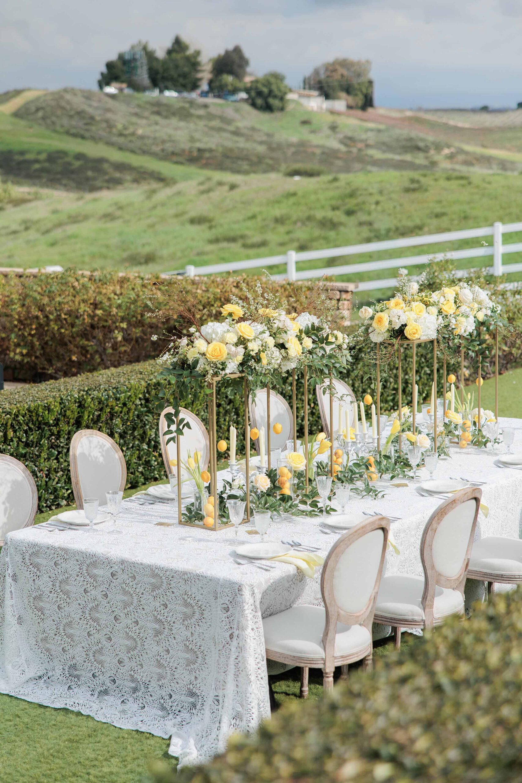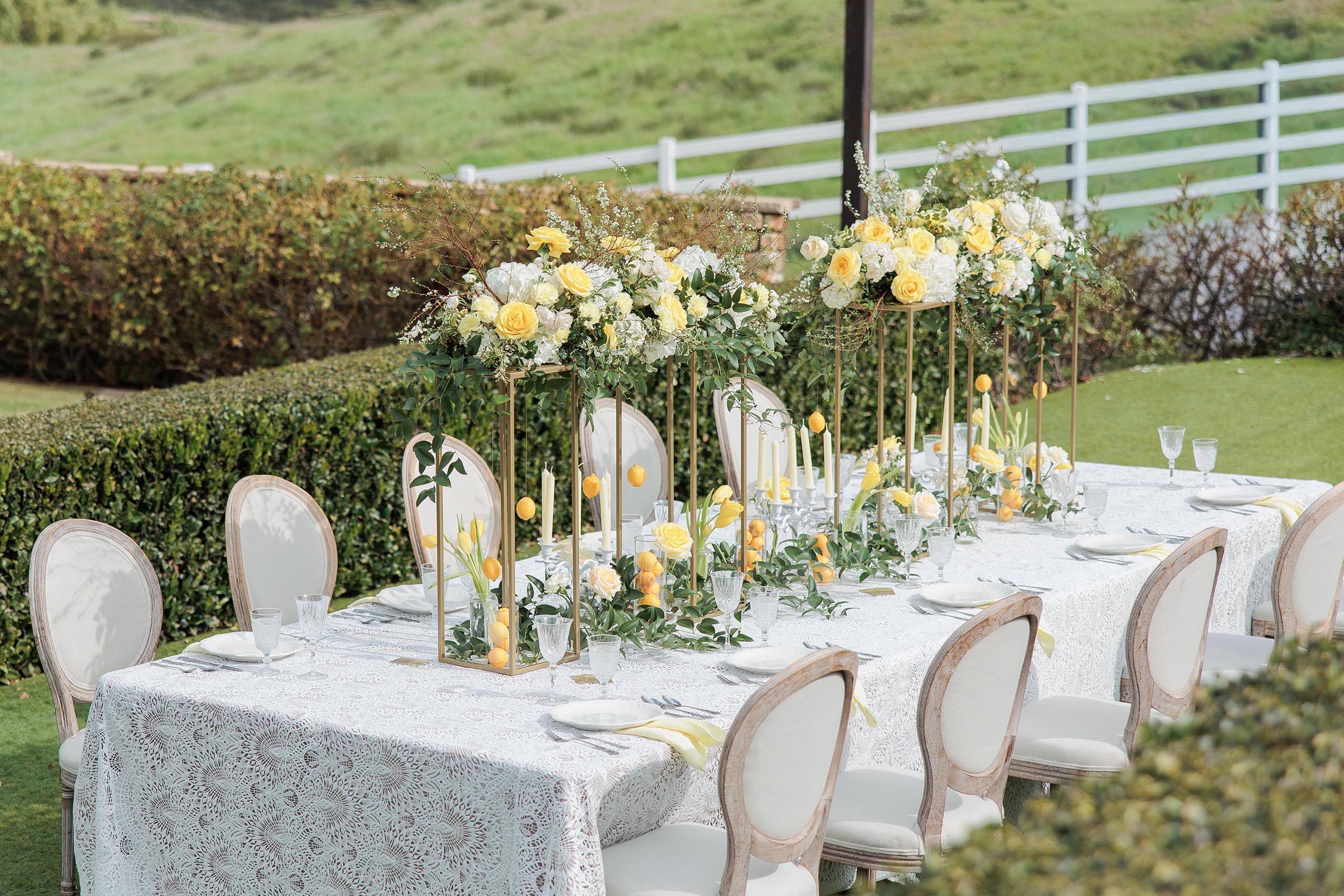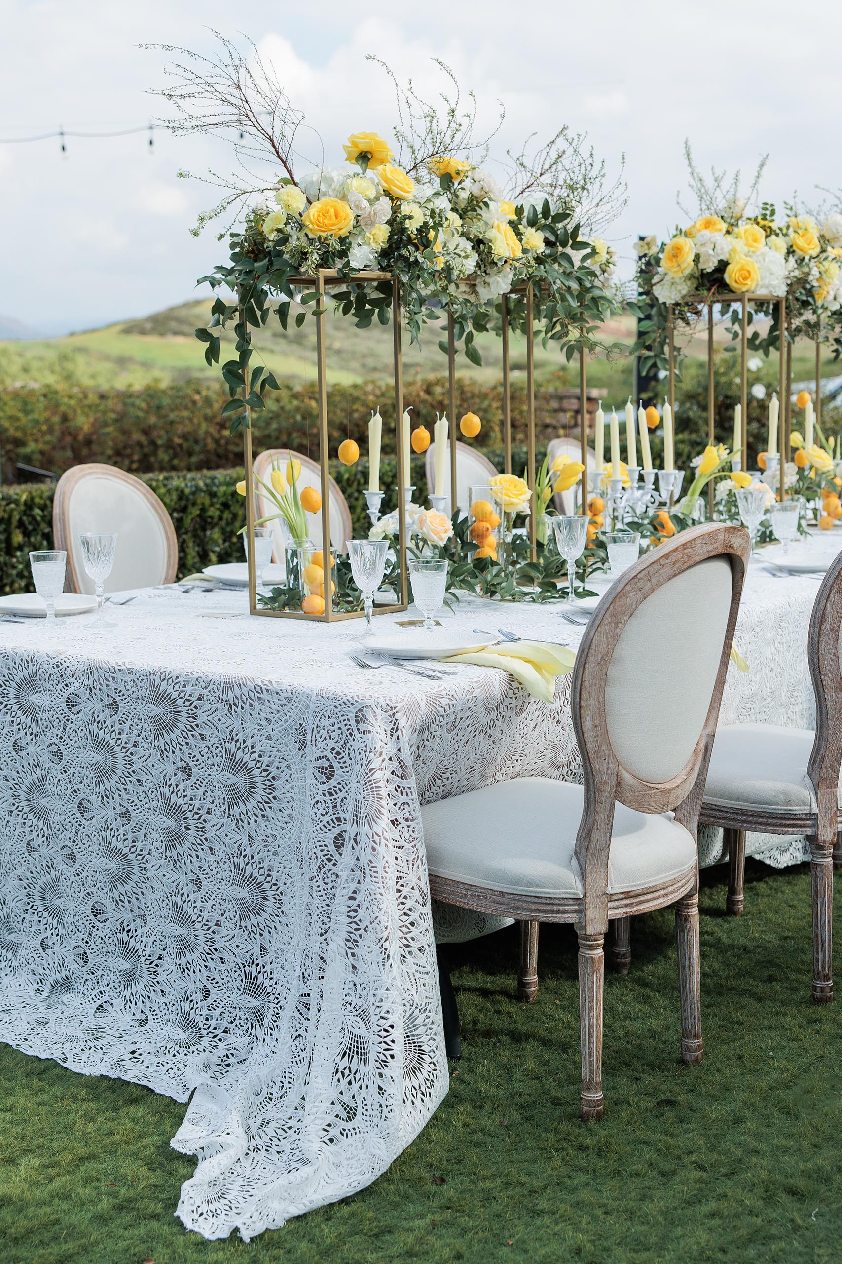 Planned by Finer Events & Co. and designed by Courtney Greer, this styled wedding shoot captures the effortless romance of French elegance set against the sun-drenched beauty of Temecula Valley. Yellow, lace, and lemons come together in a soft and flowy design story, creating a fresh yet timeless aesthetic that feels both elevated and inviting.