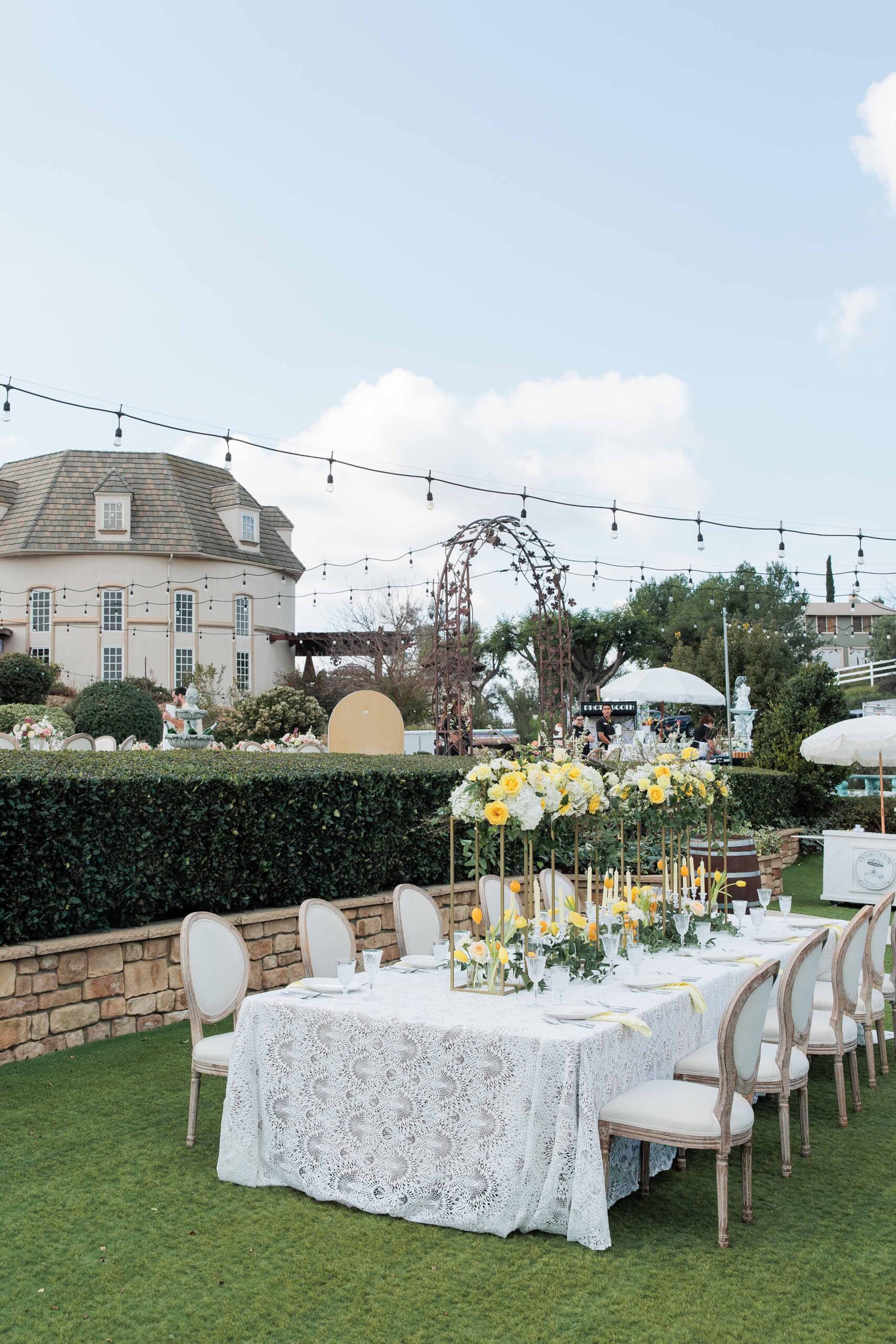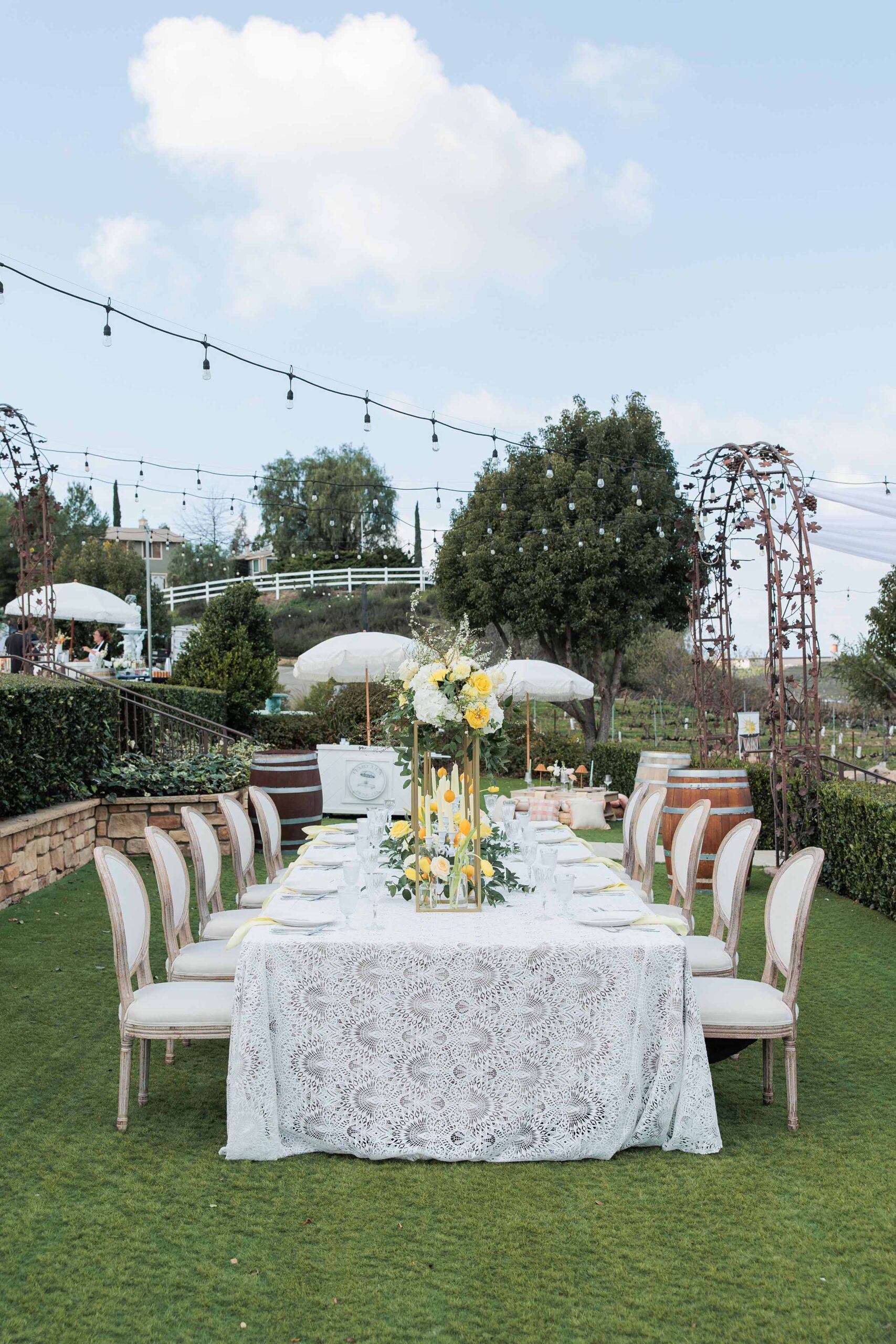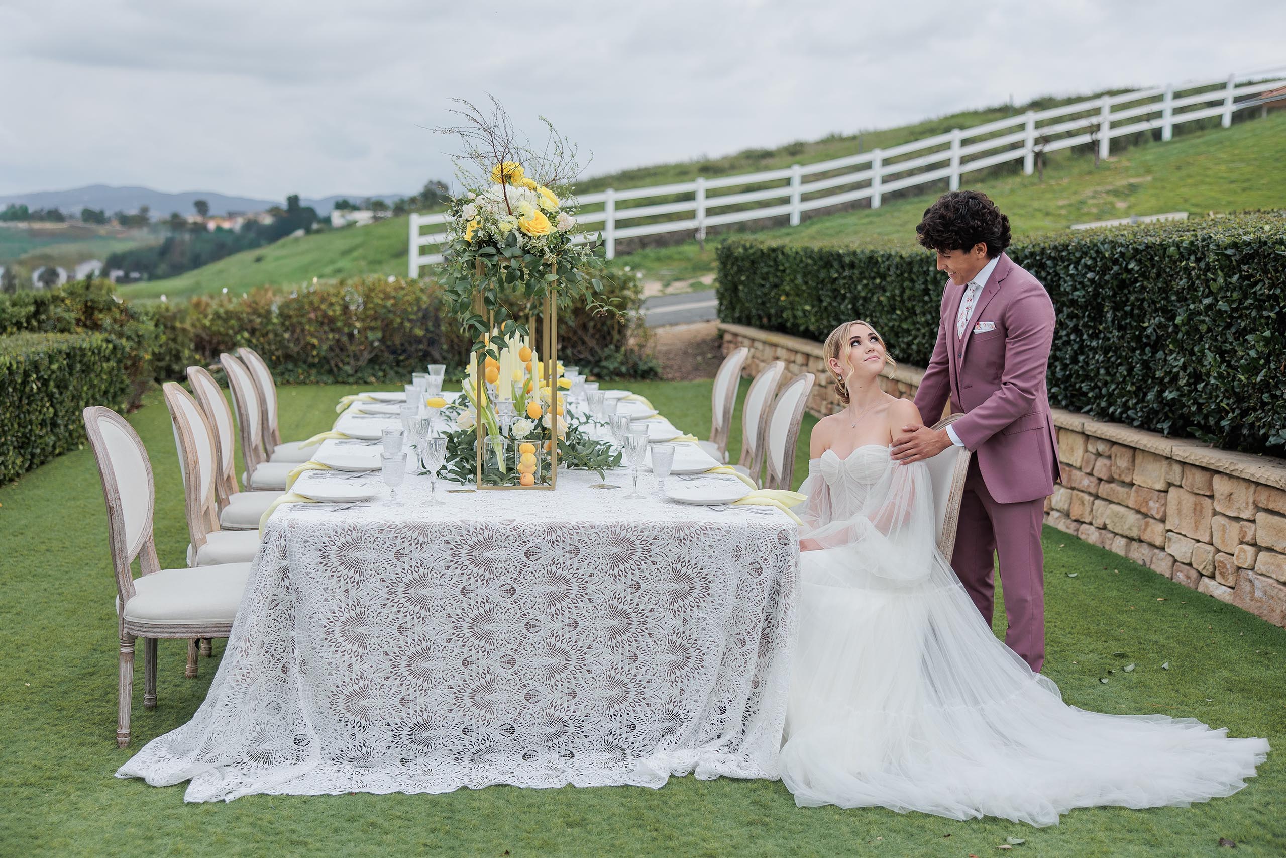 Planned by Finer Events & Co. and designed by Courtney Greer, this styled wedding shoot captures the effortless romance of French elegance set against the sun-drenched beauty of Temecula Valley. Yellow, lace, and lemons come together in a soft and flowy design story, creating a fresh yet timeless aesthetic that feels both elevated and inviting.