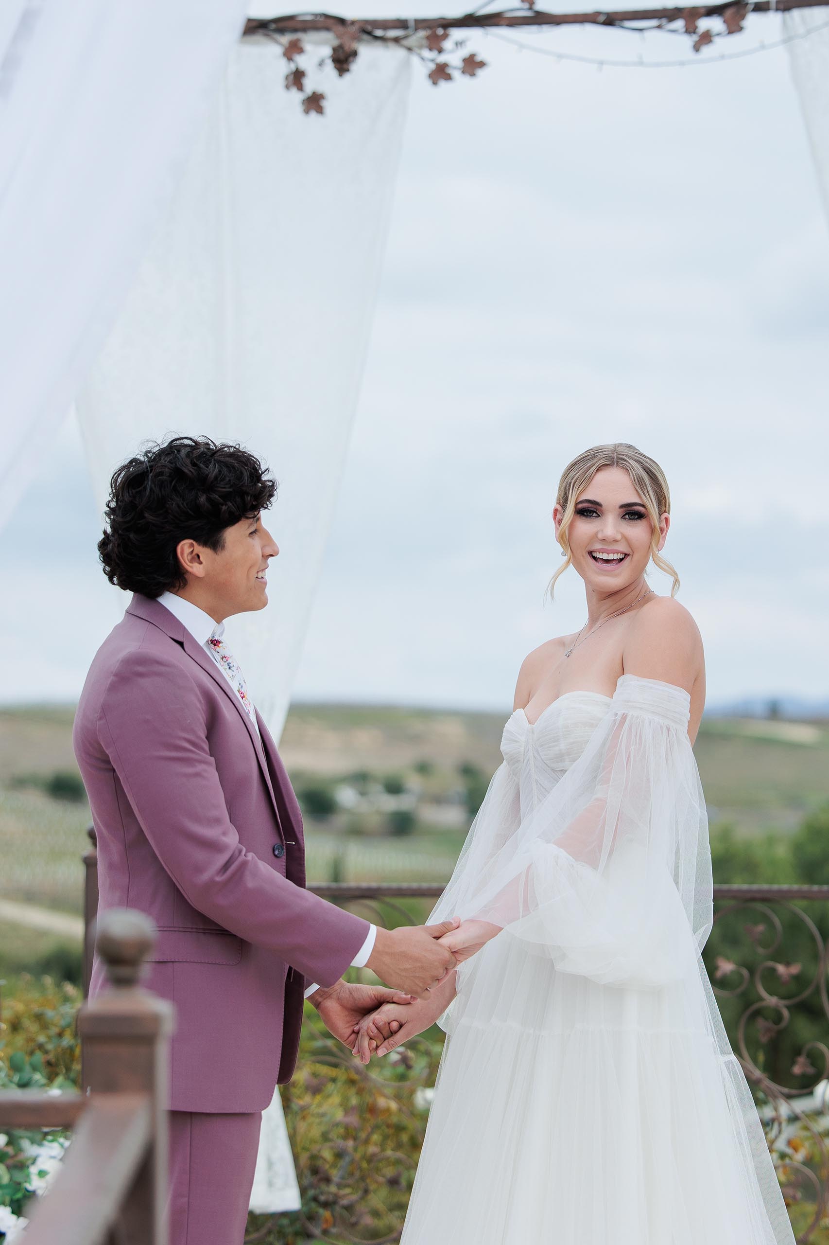 Hosted at Churon Winery, the setting offers sweeping vista views across 11 acres of estate vineyards, where rustic countryside charm meets refined sophistication. Rolling mountains, tiered lawns, and a dramatic entrance through vineyard arches create a breathtaking backdrop for the design, allowing each thoughtful detail to shine.