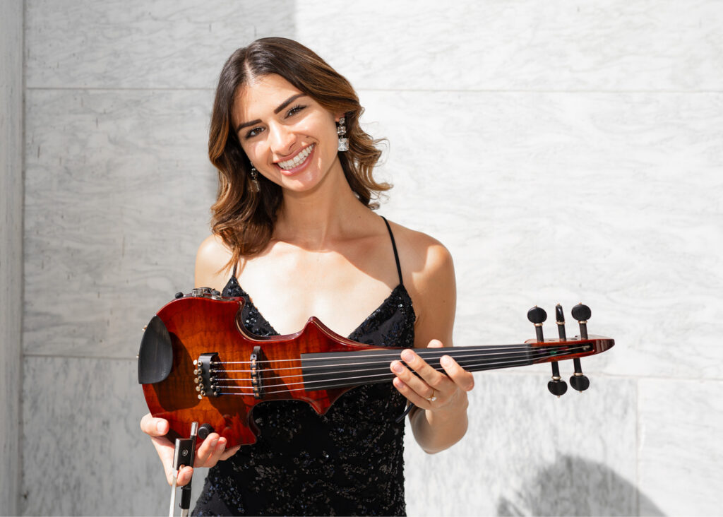 As she describes it, “The electric violin brings a fresh, modern energy to weddings while still honoring the elegance of a classical instrument,” creating an ambiance that feels refined, sophisticated, and beautifully unexpected for guests.