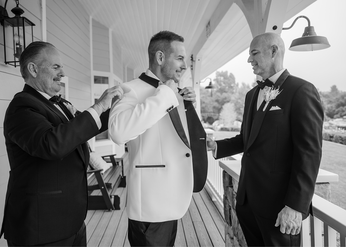 Smoothing jackets, cufflinks straightened and steadying nerves before “I do.”